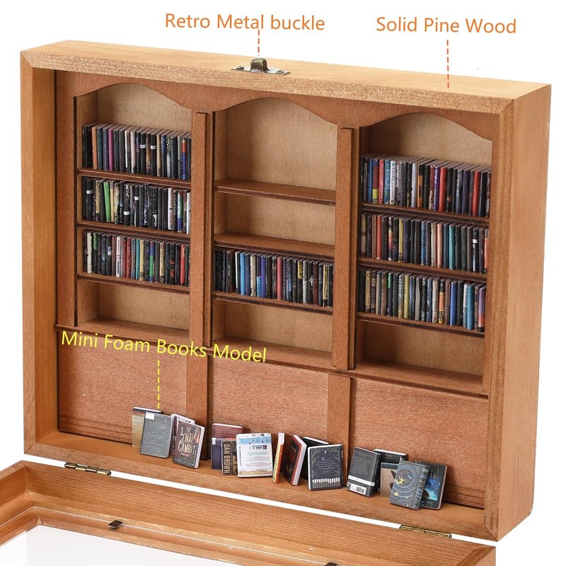 - Creative Design: This miniature book boxes is made of handcrafted solid wood, sturdy and durable. Through this transparent plastic door to see mini books model easily.