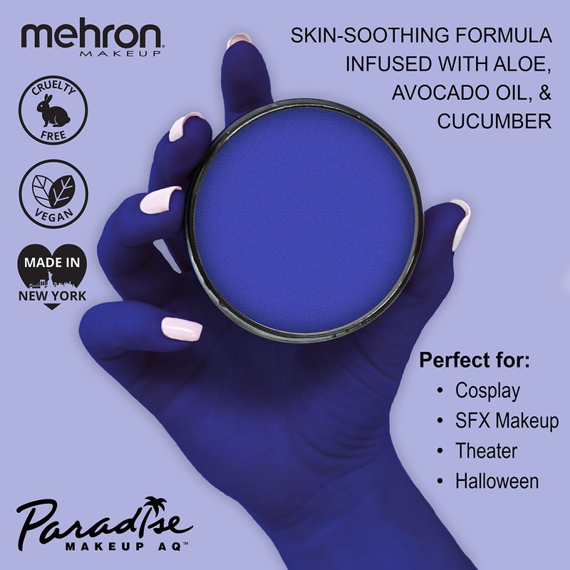 - PROFESSIONAL: Mehron’s Paradise Makeup AQ Face& Body Paint is a premium quality, water-activated makeup that offers intense color payoff and is easy to blend. True professional grade, trusted by Hollywood and Broadway pros since 1927.