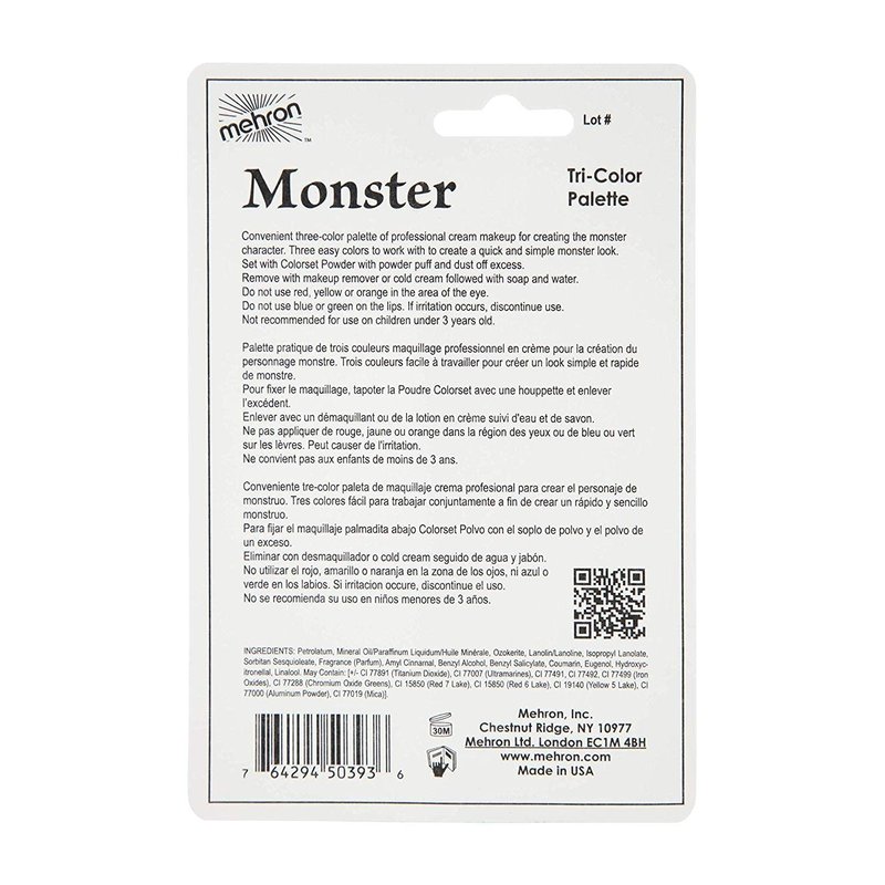 Mehron Makeup Tri-Color Character Makeup Palette | Halloween, Special Effects and Theater Cream Makeup FX Palette | Face Paint Makeup .7 oz (20 g) (Monster)