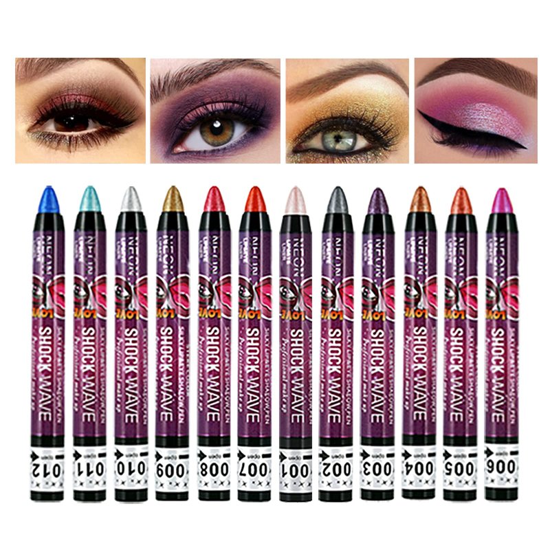 - Save Your Makeup Time - Thick-end eyeshadow crayon for quick-applying on large area,stay on all day! NOTICE:1;The colors will be long lasting with the primers or eyeshadow base, or just a foundation covered lid. 2;There has 12 colors total, 006 color is matte and a changing color, from different angles, you will see light purple or rose red;other 11 colors will has shimmer effect