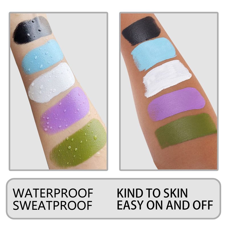- ✔High Pigmented and Good Coverage --- Creamy body paint has high pigment and great coverage,a tiny small goes a long way with full coverage on the face or body.The fine texture makes it glides on well and blends perfectly with no fading.For cleaning,white face paint stick is easy to wash off with any makeup remover,other color face paint stick need to be washed off with olive oil or oil base professional makeup remover