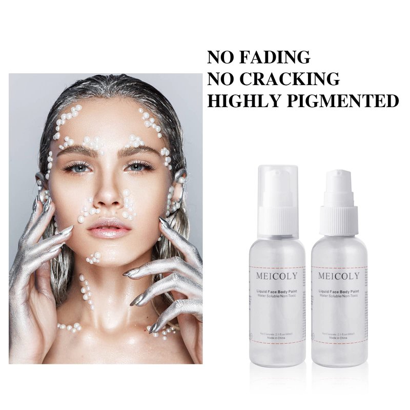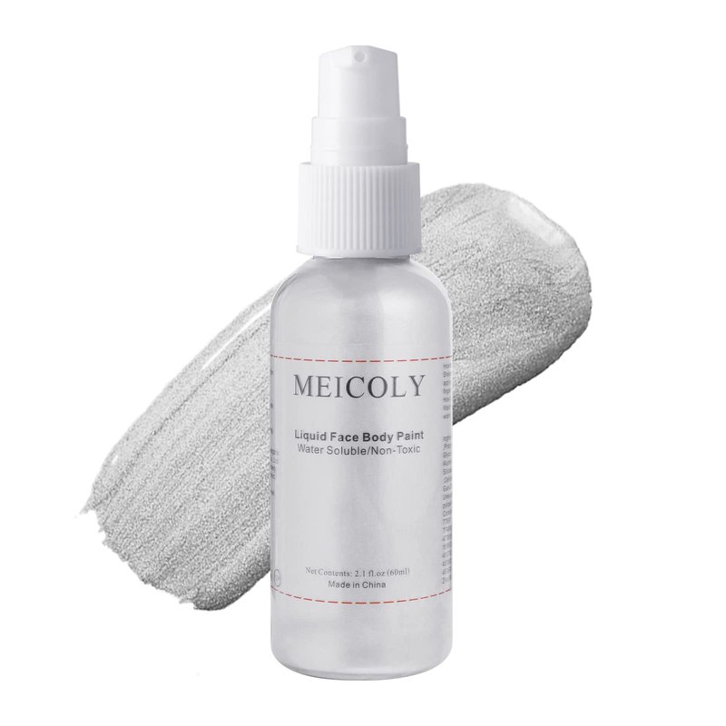 MEICOLY Metallic Silver Face Body Paint,2.1Oz Smudge-proof Silver Face Paint for Halloween Tin Man SFX Cosplay Makeup,Water Based Washable Full Body Paint for Adults and Kids