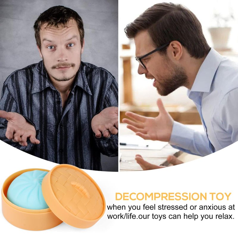 MEIEST 4 PCS Colorful Dumpling Stress Balls Fidget Sensory Toy,Squeeze Dough Ball Stress Relief Hand Toy,Bun with Food Steamer Stretchy Desk Toys