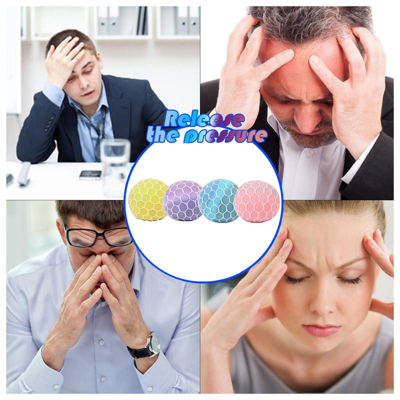 MEIEST 4 PCS Colorful Mesh Grape Stress Balls,Squeeze Color Change Ball Fidget Toy,Stress Relieve Sensory Balls,Stretchy Toys,Hand Exercise Bouncy Balls