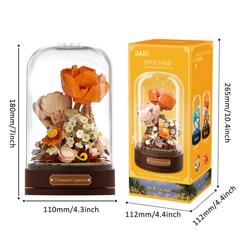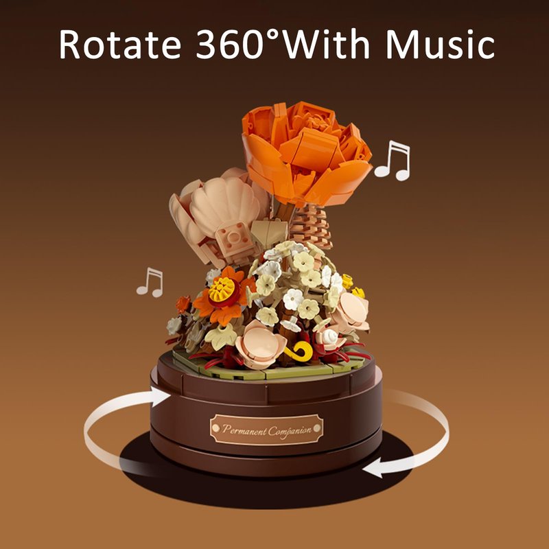 - Music Box: Turn the music base,the artificial flower will rotate 360 degrees with the music, and all details will be displayed(No battery required).The flowers bouquet building set is equipped with a base and dust cover, which can be well insulated from dust and very easy to take care of.