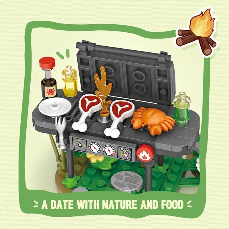 MEIEST Camping Building Blocks Set,Holiday Camper Collection Particle Construction Building Bricks Toy,Home Decor (Picnic)