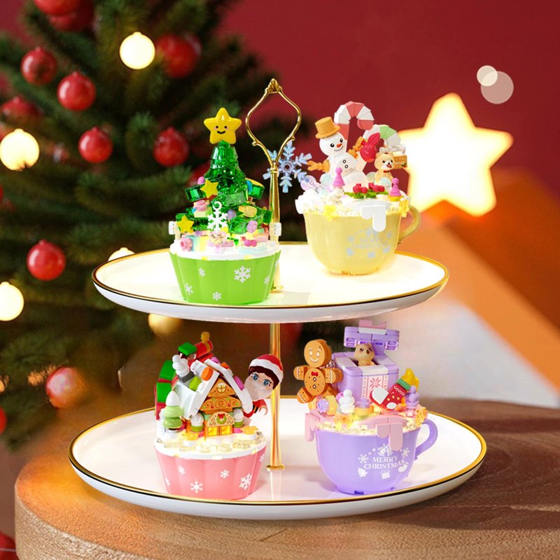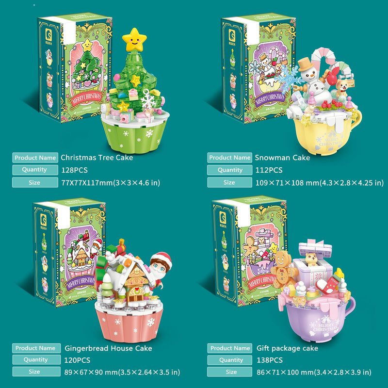 - Christmas building bricks:The unique cake cup design includes 4 styles----Christmas Tree,Snowman,Gingerbread House,Gift package.Composed of 498 building blocks.