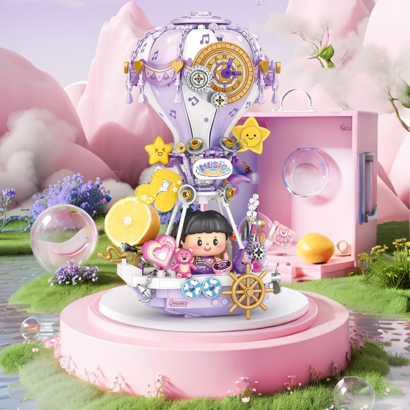 MEIEST Hot Air Balloon Building Blocks Set,Fantasy Dream Journey Collection Construction Building Bricks Toy,Home Decoration (Music)