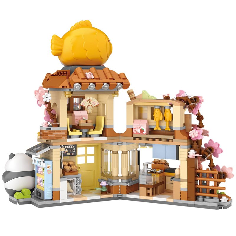 MEIEST Mini City Shop Street View Building Blocks Model Set,Simulation Panda Architecture Collection Particle Construction Building Bricks Toy,Home Decor (Taiyaki)