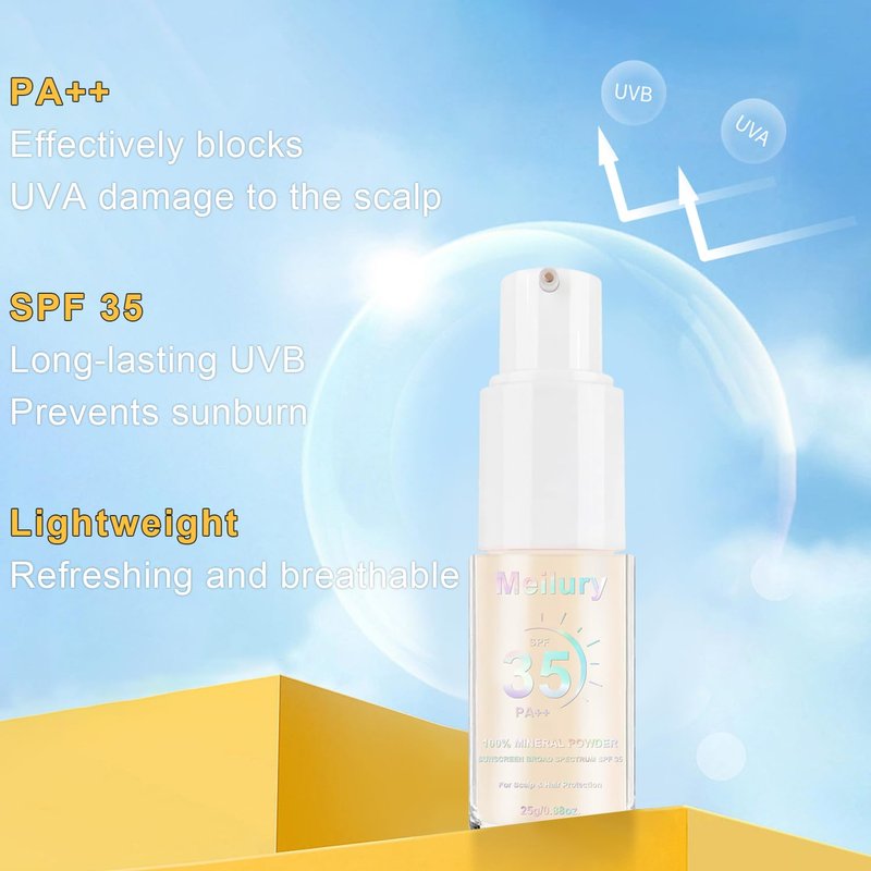 Meilury Mineral Sunscreen Powder, for Scalp & Hair, 0.71 Oz. SPF 35 PA++, Scalp Sunscreen Powder, Broad Spectrum UV Protection, Lightweight, No-Greasy, Cruelty-Free Formula