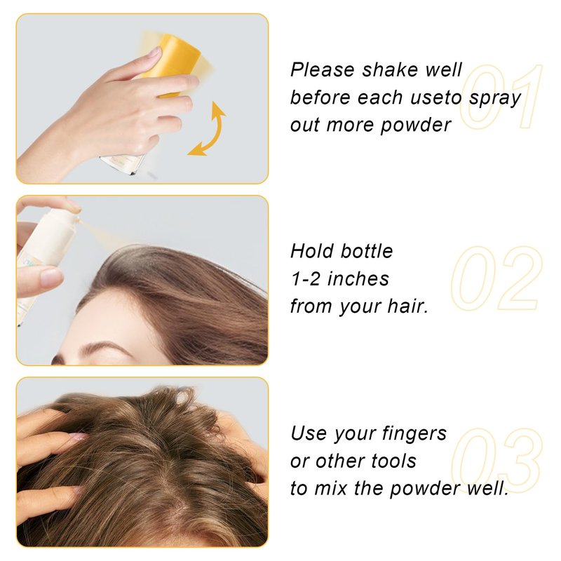 - 【How to Apply】Shake well before use. Hold the bottle 1-2 inches away from your part and blend in with your fingers or a hairbrush.