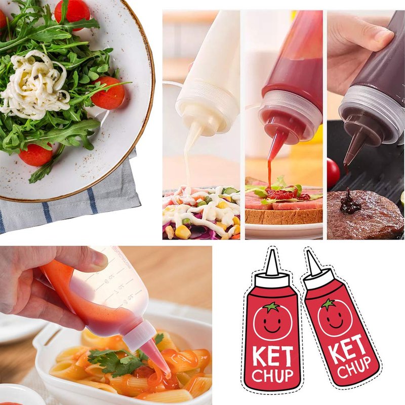 - Sauce bottle with squeeze top are made of clear, translucent plastic, which allows you to check on their contents at a glance.You can simply throw it into the dishwasher for an easy clean.