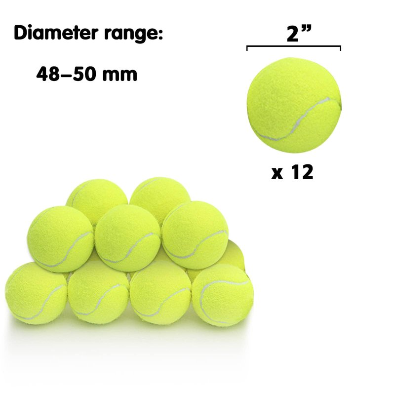 - 12 Tennis Balls: Package includes 12 pcs mini tennis balls with 2" diameter, it can be used for the ball launcher for a long time. Please search for Asin# B0B8S2YGB7, it is the dog ball launcher that used with the mini tennis balls.