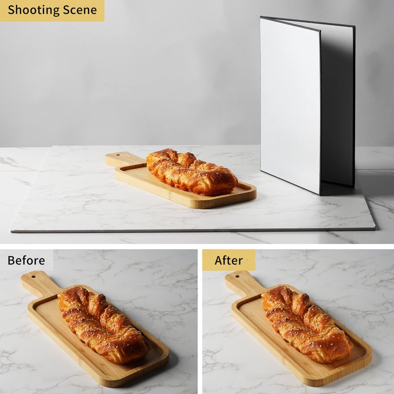- Compact Size: 12x8 inch board opens to 24x8 inch, It is a little larger than a regular sheet of paper, enough used as small item desktop photography props and don't occupy much place