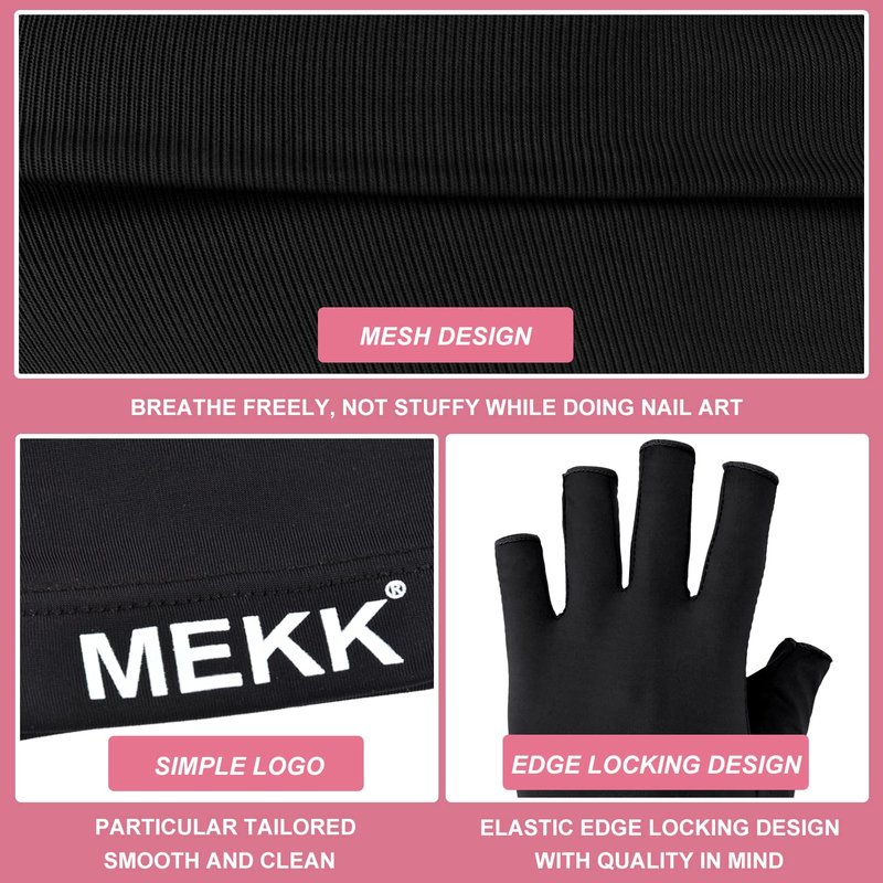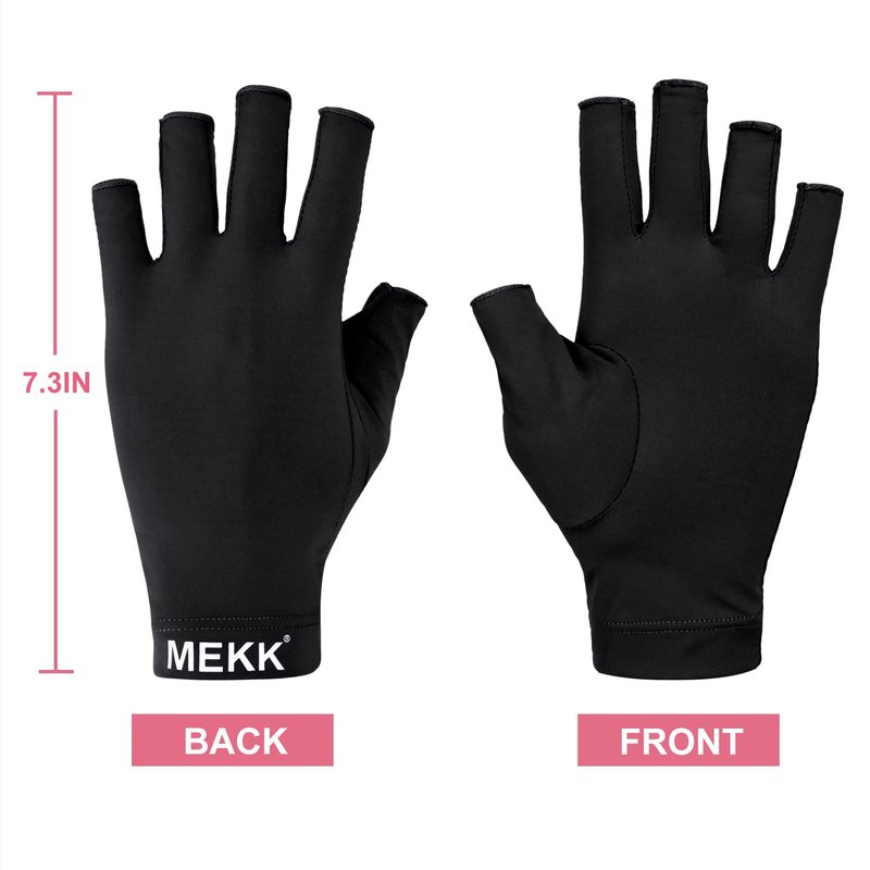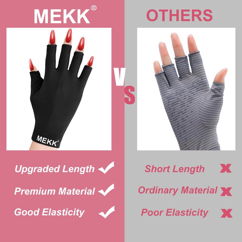 • ★Anti-UV:MEKK uv light gloves for gel nails with the rating of UPF99+ can block most of uv rays which is harmful to your skin, keeping your hands form getting rough, aged and tanned. The uv isolation rate is close to 99%, a must-have for nail art.