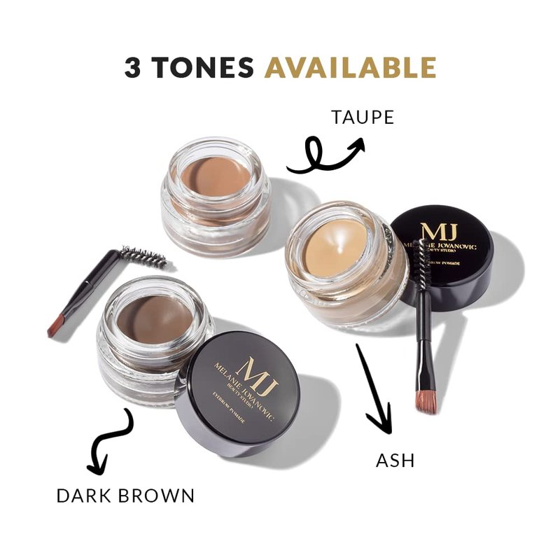 Melanie Jovanovic Beauty Studio Brow Pomade is a highly pigmented and creamy formula ideal for defining perfect eyebrows. With the help of the angled and spoolie brush you can outline, fill in and define your eyebrows in just a few minutes. The Brow Pomade is very easy to apply and has a long-lasting and buildable formula that glides on smoothly to skin and hair, allowing time for blending before drying down completely to a matte finish that will last up to 18 hours. Smoodgeproof and waterproof formula, allows time for blending before it sets and with a minimal amount of Brow Pomade that goes a long way. The product will yield for very many applications and you will love its professional finish. How to use it: Using the spoolie end, comb brow hairs upward, then outline the lower arch of the brow using the product on the brush end. Blend the eyebrow color with the spoolie. Next, brush brow hairs downward, outline the upper arch of the brow and lightly blend with the spoolie. For the most natural-looking results, continue to blend the product through the brow during the application process. Finish by filling in the front of the eyebrow with the remaining product to create a soft gradient effect. This innovative mela beauty studio product comes in three shades so you can find your perfect match, or even combine two of them for stunning definition. Be sure to close the lid tightly after each use to preserve the creamy and smooth texture.