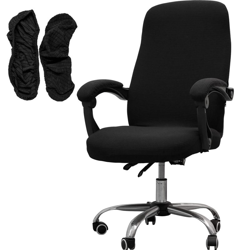Melaluxe Office Chair Cover with Armrest Covers, Universal Stretch Desk Chair Cover, Computer Chair Slipcovers (Size: L) - Black