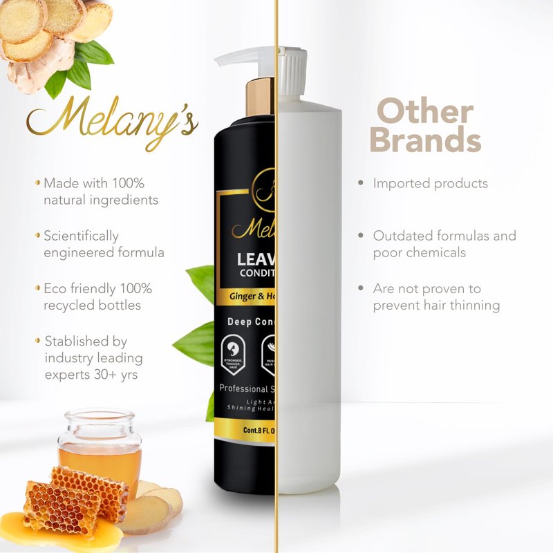 Melany's Hair Growth Leave-In Conditioner, Ginger & Honey, Anti-Thinning and Regrowth Support, Daily Hydrating, Strengthening, Volumizing Fuller Hair Natural Herb Treatment