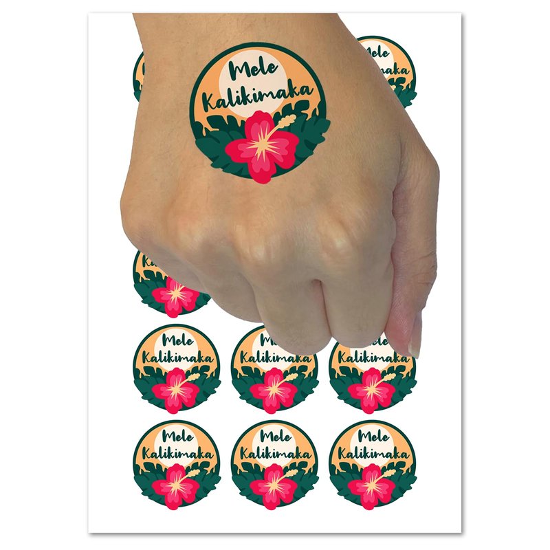 Mele Kalikimaka Hawaiian Merry Christmas Hibiscus Flower Temporary Tattoo Water Resistant Fake Body Art Set Collection - 15 2" Tattoos (1 Sheet)