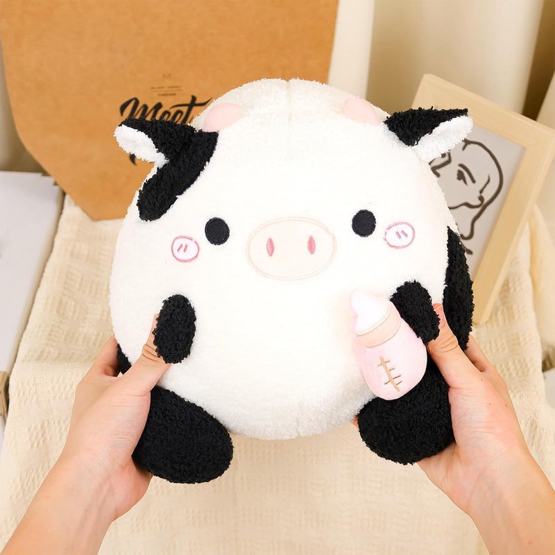 MELECERi Stuffed Animals 9.8" Cute Soft Cow Plush Pillows with Feeding Bottle Plushies for Boys and Girls Gifts