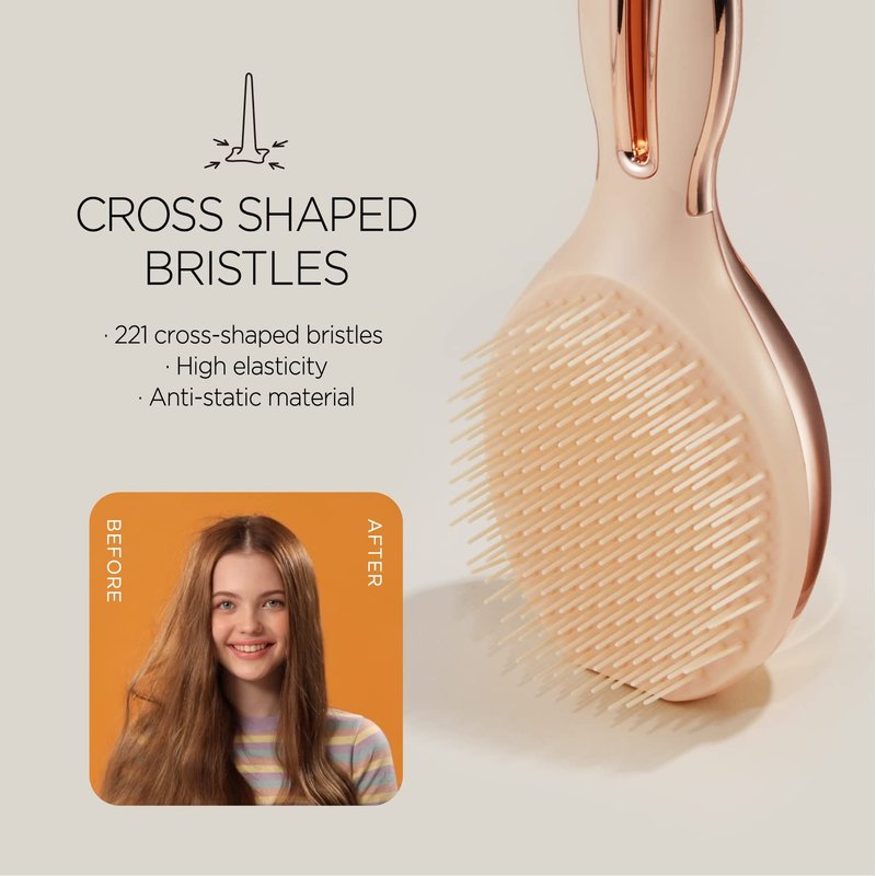 - CROSS SHAPED BRISTLES - 221 cross-shaped bristles prevent hair from getting caught in the brush.