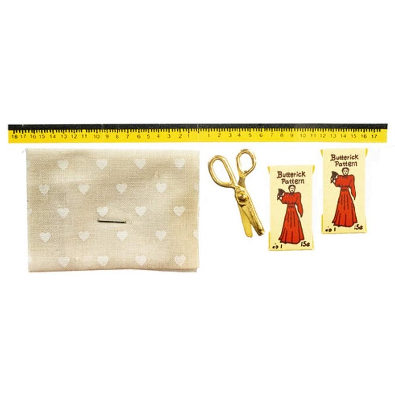 Melody Jane Dollhouse Material Pattern Scissors & Tape Measure Sewing Dressmaker Accessory