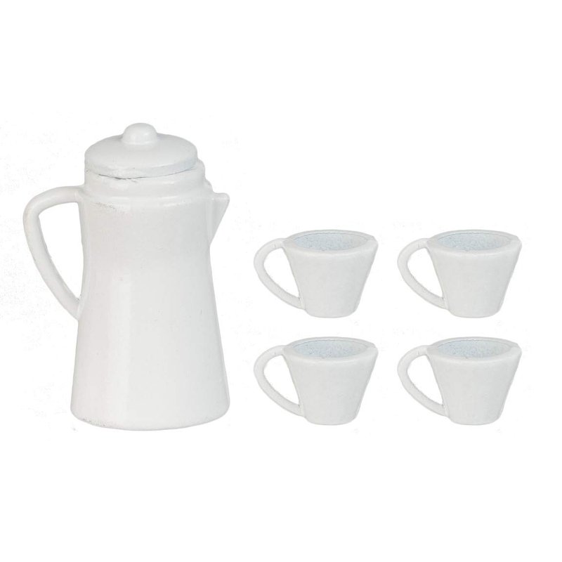- 1:12 Scale - Metal - Coffee pot with lid and 4 mugs - height 25mm = 1 inch