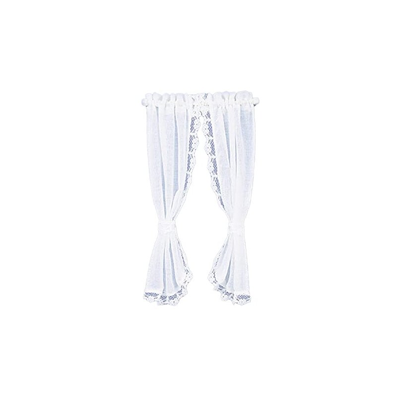 Melody Jane Dollhouse White Sheer Curtains on Rail Miniature 1:12 Scale Window Accessory