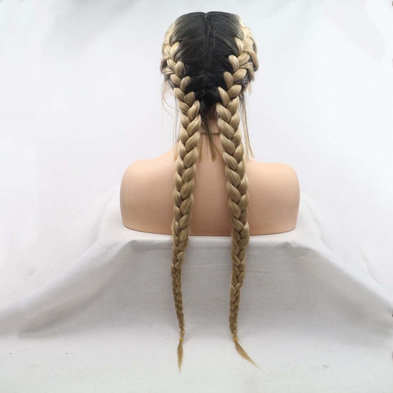 melody wig Synthetic Blonde Lace Front Braid Wigs Ombre Blonde Double Braid With Dark Roots Heat Resistant Fiber Braid Baby Hair Wigs Add Human Weaving … …