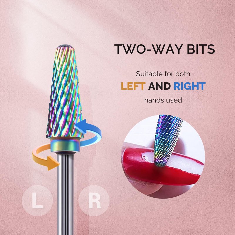 - Professional Carbide Nail Drill Bits: Comes with 2pcs fine-grit bits, 3pcs medium-grit bits and 5pcs large-grit bits, all are made of optimum strength tungsten carbide material, which is sturdy sharpen enough to remove sharpen smoothen acrylic gel nails, thick extension nails, builder gel nails, natural nails.