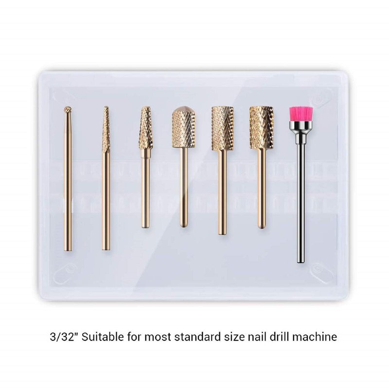 - 7Pcs Nail Drill Bits: Comes with various shapes of tungsten carbide nail drill bits, this drill bits set meets all needs of manicure pedicure, suitable for professional manicurists and beginners. Excellent for nail preparation, acrylic gel nails removing polishing, nail surface cleaning, cuticle area dead skin trimming.