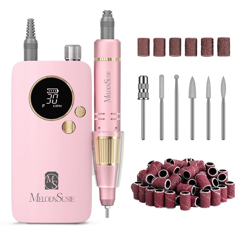 MelodySusie Portable Nail Drill 30000 RPM,Professional Rechargeable Electric Nail File,SC320F Cordless Nail E File for Acrylic Nails Gel Polishing Removing,Efile Nail Kit for Manicure Salon Home,Pink