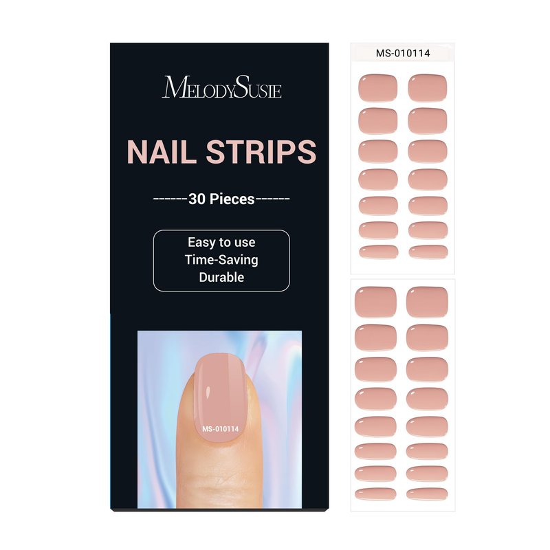 MelodySusie Semi Cured Gel Nail Strips, Nude Jelly - Works with Any Nail Lamps, Salon-Quality, Long Lasting, Easy to Apply & Remove - Includes 30Pcs, Free 5D Stickers, 2 Prep Pads, Nail File & Wooden Stick