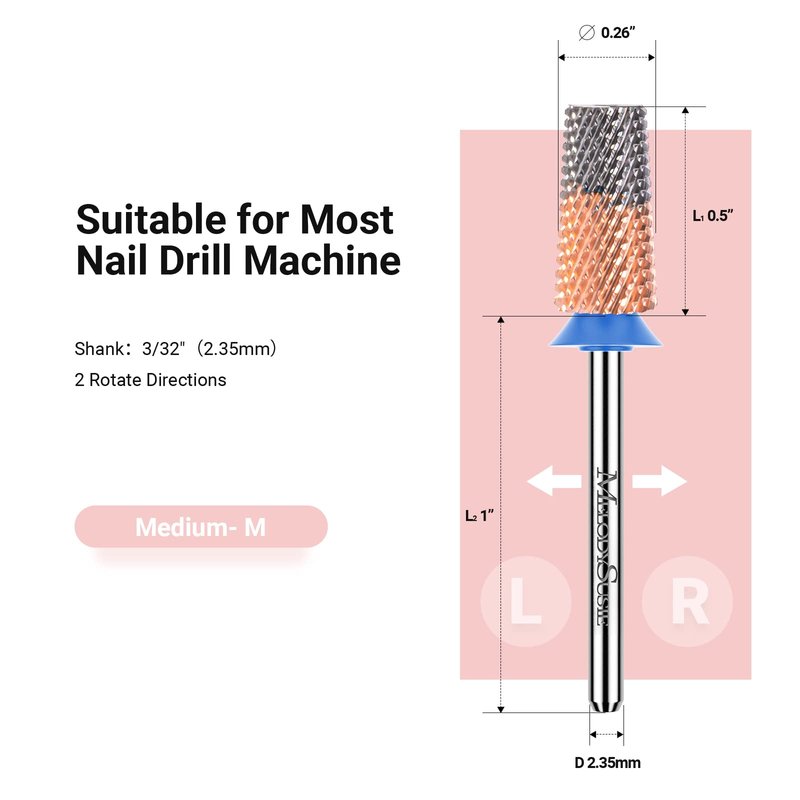 - Fits Well with Most Nail Drill: Universal 3/32" (2.35mm) tungsten steel shank perfectly suits most professional electric nail drills on the market. These tapered bits are suitable for nail technicians to make manicures and pedicures. Please note that to prevent breaking, the nail drill bits cannot be dropped.