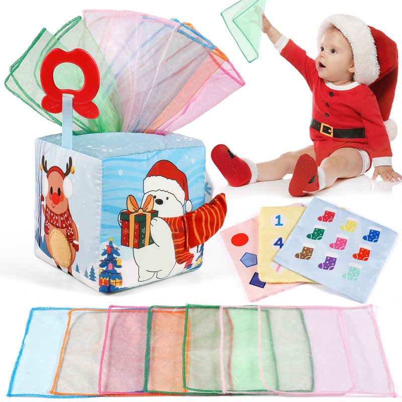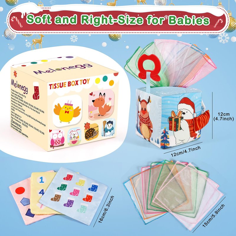 Melonegg Christmas Baby Toys Montessori Toys Baby Tissue Box Toy for Babies, Christmas Party Favor for Boys Girls Christmas Stocking Stuffers Party Favors Gifts