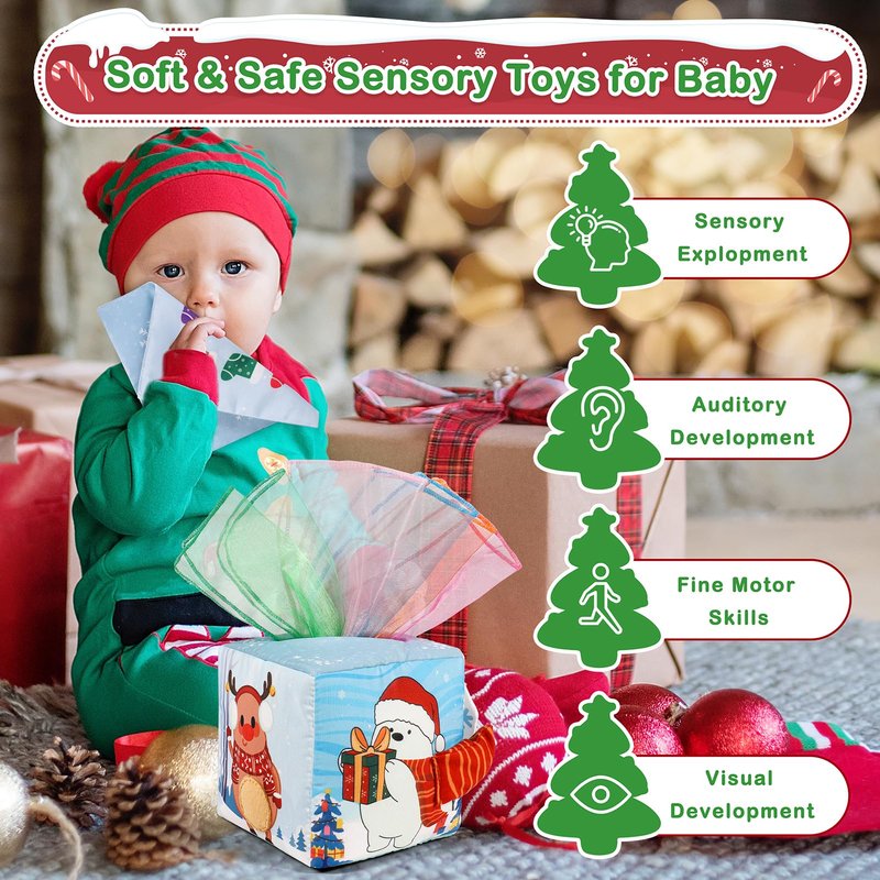 - Engaging Montessori Toy: This Christmas baby toy is designed to stimulate your little one's senses and encourage motor skill development through the fun activity of pulling tissues out of the box.