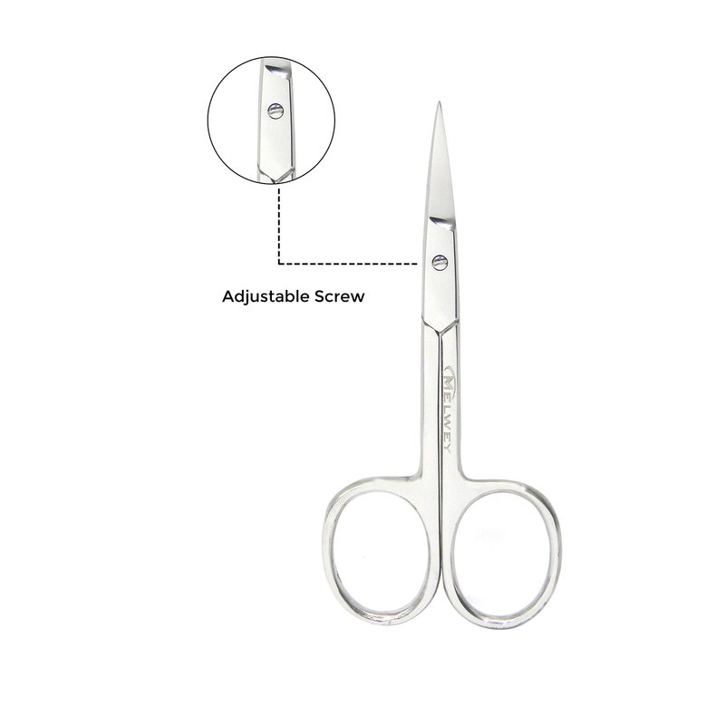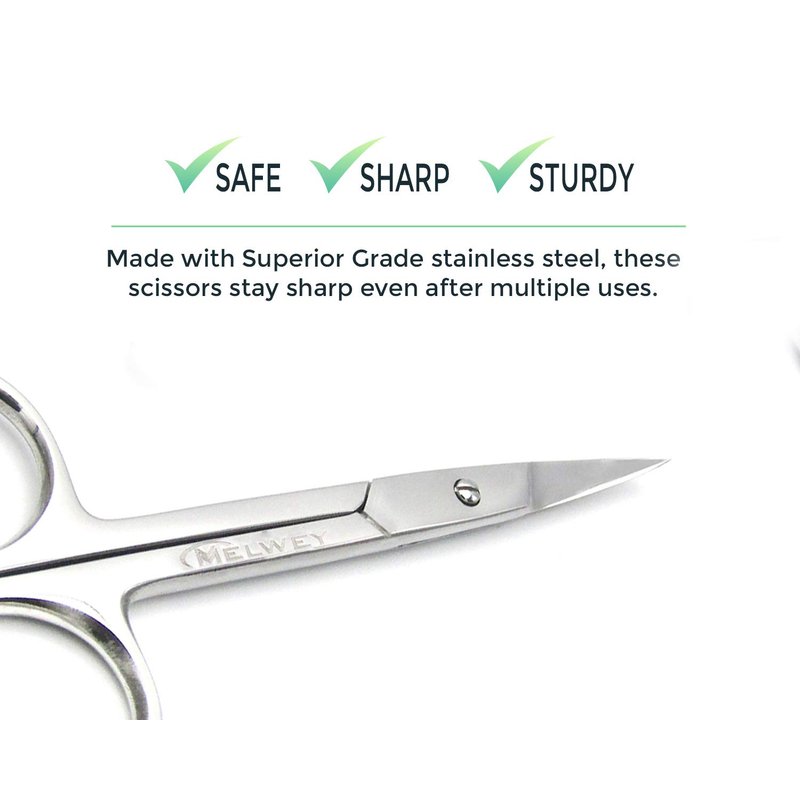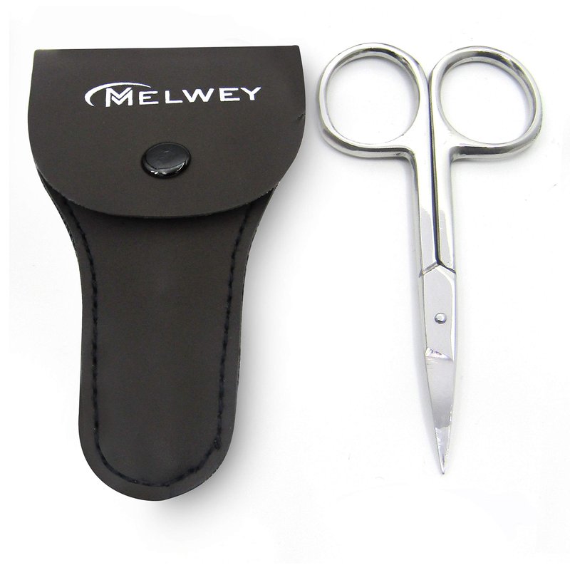 Melwey Eyebrow Scissors & Small Cuticle Scissors, Curved Blade Manicure TSA Scissors. Stainless-Steel Scissors for Eyelashes, Facial Hair, Pubic, Men Moustache & Beard.