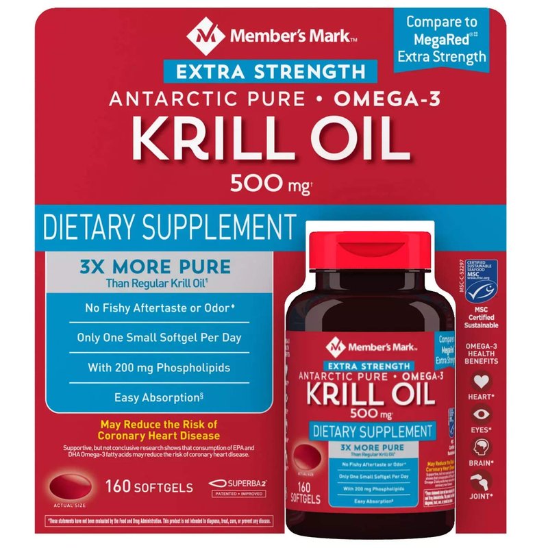 Member's Mark Extra-Strength Antarctic Pure Omega-3 Krill Oil 500 mg 160 ct