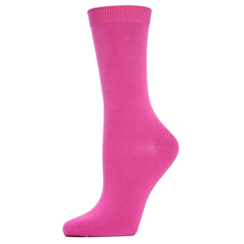 MeMoi Women's Flat-Knit Rayon Blend Crew Socks Fuchsia One Size