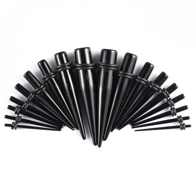 Gauge Size: Acrylic tapers for ears with double o-rings: 14G (1.6mm), 12G (2mm), 10G
