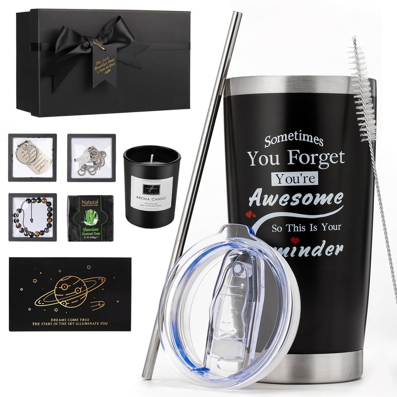 - 【Gift Box Package】:The gifts set comes with Insulated Tumbler , Men's Bracelet,Pure Manual Soap ,Scented Candle,Cross Necklace,Keychain,Greeting Card, Exquisite gift box and some accessories such as lid, straws. This men gift set is a wonderful gift to satisfy your giving gift needs and the practical dad gifts set will make him happy and heat- warming.