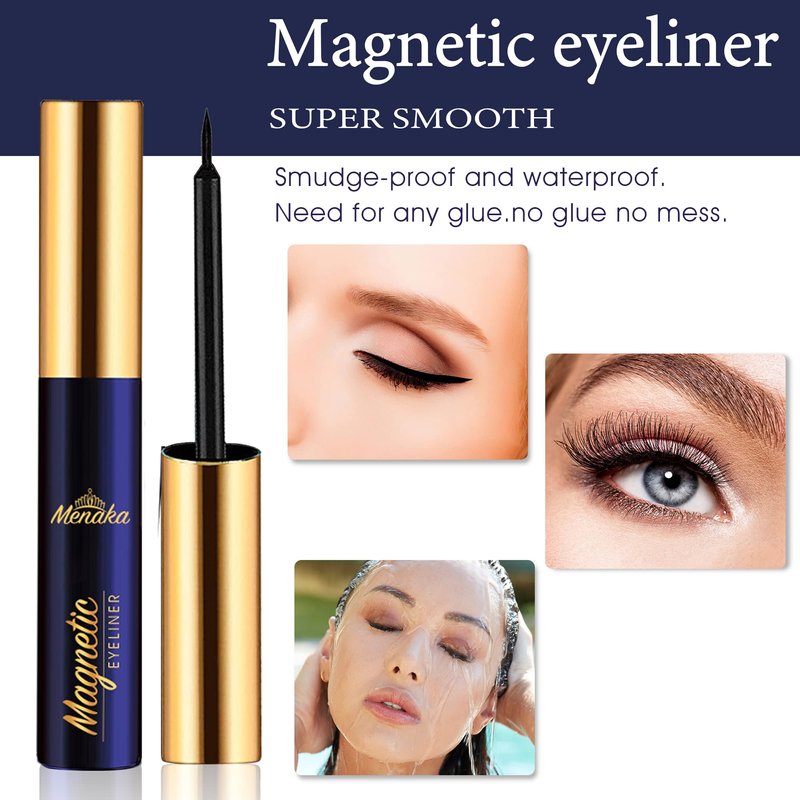 - 【EASY TO USE】No special skills or makeup artist needed. First, shake the eyeliner before use. Apply the magnetic eyeliner as you would with any other liquid eyeliner. Wait for 2-3 minutes, it will become sticky and then stick the magnetic eyelashes to the eyeliner.