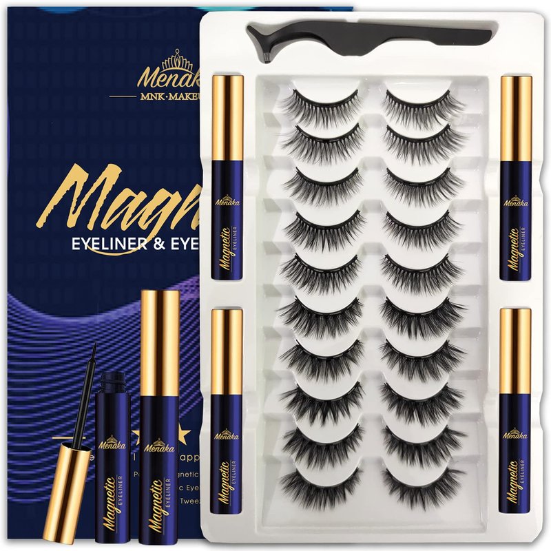 Menaka Magnetic Eyelashes Magnetic Lashes with Eyeliner,Magnetic Lashes Natural Looking,10 Pairs Reusable Magnetic Eyelashes kit,False Eyelashes,Cruel