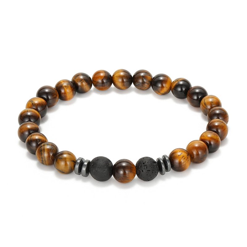 MengPa Mens Beaded Bracelets Matte Lava Rock Volcanic Stone Beads for Women Stretch Bracelet Brown Tiger Eye Fashion Jewelry US4543C