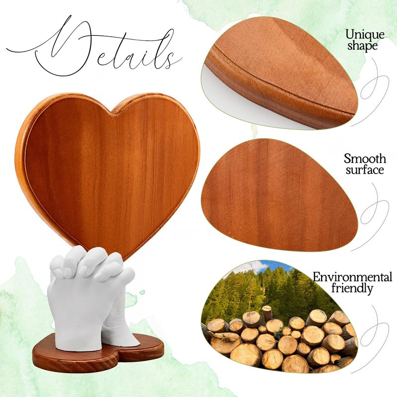 Menkxi 7.1 x 6.3 x 0.6 Inch Heart Shaped Wood Base Hand Casting Sculpture Base Hand Casting Kit Wood Keepsake Display Stand for Anniversary Wedding DIY Crafts Art Exhibition Home Decoration