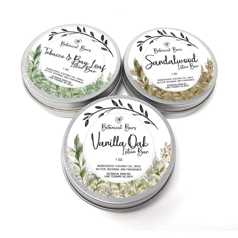 Men's Lotion Bar Set - 3 Lotion Bars 1oz Each - Sandalwood Lotion, Vanilla Oak Lotion, and Tobacco and Bay Leaf Lotion