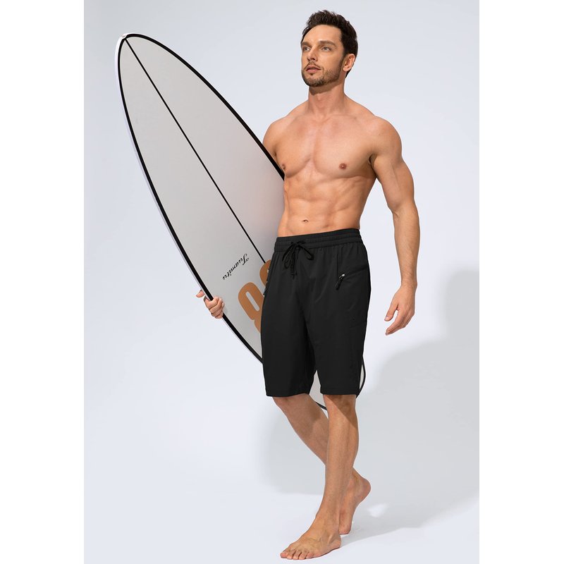 Men's Swim Trunks Quick Dry Board Shorts with Zipper Pockets Beach Shorts Bathing Suits for Men - No Mesh Liner(Black,L)