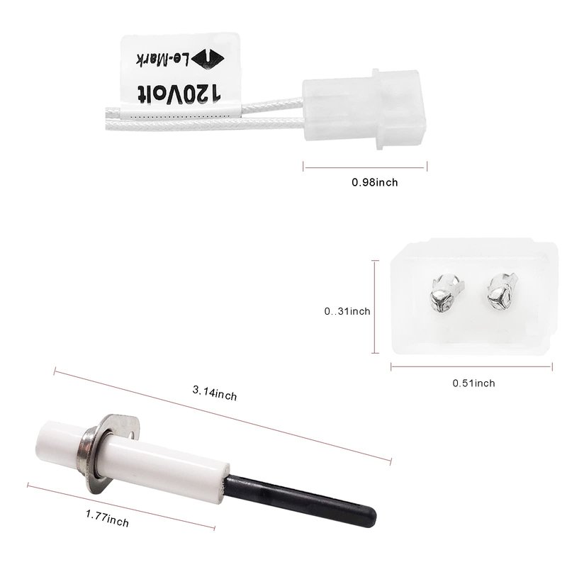 MENSI Silicon Nitride Hot Surface Heating Ignitor Replacement Spare Parts For Forced Air Gas Furnace 120V Igniter with Cable Socket