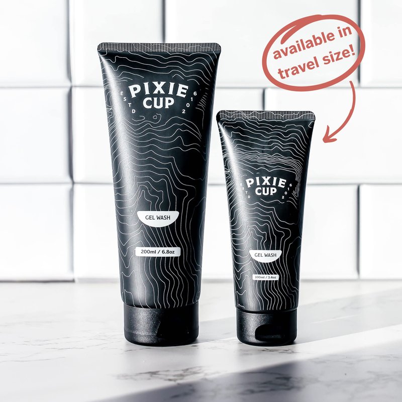 - Thick Texture. Unlike other brands, Pixie Cup Gel Wash isn’t watery and thin, meaning it won’t leak or run off your cup. Our unique texture provides a rich, sudsy lather on your cup so you get a thorough wash.