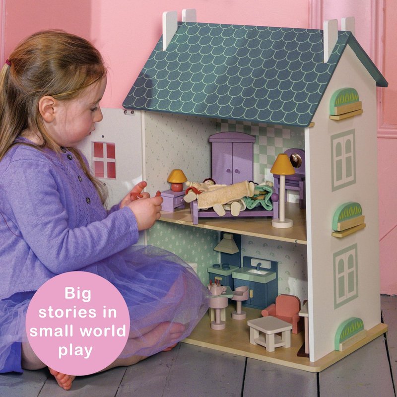 Welcome to a world of miniature marvels with our wooden doll house furniture and accessories set, where every piece tells a story of adventure and creativity! Imagine a kitchen where dollhouse dolls and furniture come together to create a scene from a fairy tale. This set isn't just about doll houses furniture; it's about bringing dreams to life in your large dollhouse. As you open the box, you're greeted by the exquisite craftsmanship of our wood dollhouse furniture, each piece echoing real-world design's charm and quality. The kitchen, the heart of our set, is a wonderland of culinary delight. A stove with a detailed oven and air vent awaits, ready for imaginary feasts and banquets. Next to it, the fridge, with its opening doors, stands prepared to store all sorts of miniature goodies. A sink unit with a cupboard underneath adds a touch of realism, offering a spot for washing up after those grand tea parties. The table and two stools invite your dollhouse inhabitants for cozy meals or a cup of tea, served from the adorable teapot that comes with two cups. Every item in this large doll house furniture and accessories set is a testament to the timeless beauty of wooden doll house furniture and accessories sets. Crafted from high-quality wood, each piece is visually stunning and built to last, ensuring countless hours of imaginative play. The colors are a feast for the eyes - shades of blue, white, pink, and natural wood blend seamlessly, creating a visual harmony that will make this set the centerpiece of any large dollhouse. The attention to detail is remarkable, with every knob, drawer, and door designed to inspire and delight.